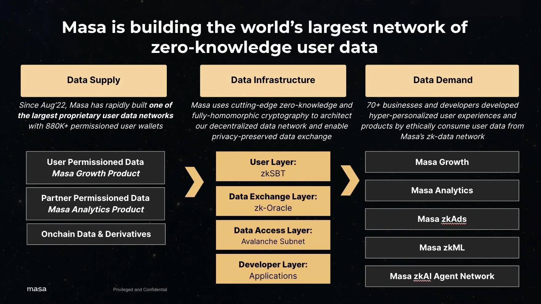 面对这种隐私焦虑, Masa Network 给出的解药是 zkp(零知识证明),在数据的存储、调用和分析的全环节上做了隐私保护。