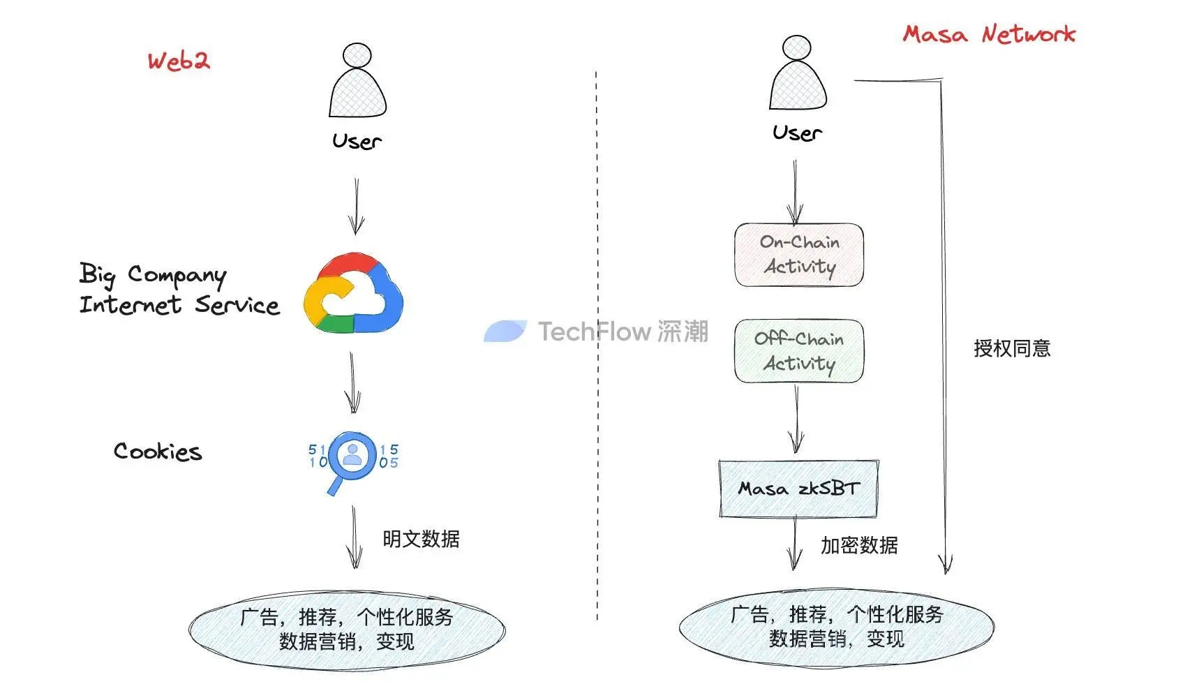 总体上看,Masa Network 要做的本质上也是数据的生意,但在数据保护的流程上,运用区块链的加密技术,与当前 Web2 的大型数据公司存在着明显不同。