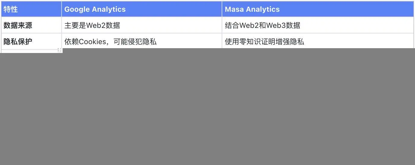 但由于面向 Web3 领域和更加注重隐私,Masa Analytics 与谷歌的数据分析服务仍存在着多个方面的不同: