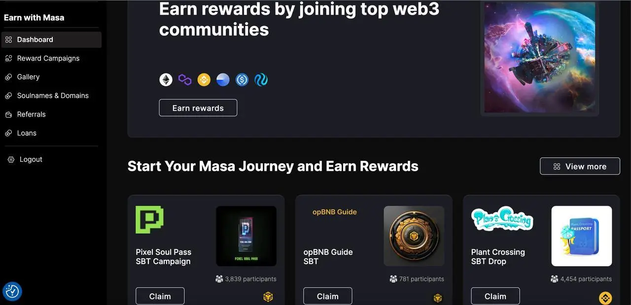 以上过程,你几乎可以在流行的任意一个任务平台上完成。当然,Masa Network 也不例外。目前,在 Masa 上你既可以完成来自不同链的项目方所提供的多种任务,获得多种奖励;同时也可以在其中申请独一无二的 Soulname(类似域名靓号),向外进行展示。
