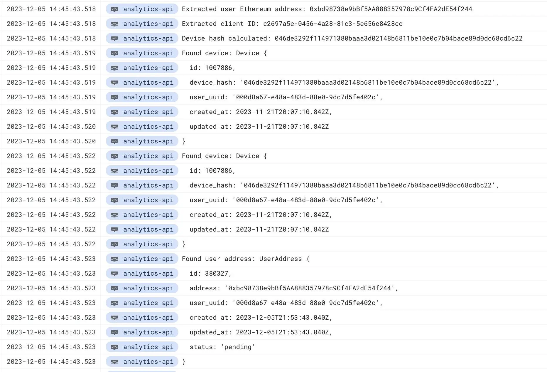 2.Masa 所提供的工具,不使用让人产生隐私焦虑的 。每个独特的用户都用 uuid (unique user ID) 代替,每个登陆的设备也会被加密形成独特的 device hash。用户信息会被一个匿名的 session ID 和加密钱包地址保护;
