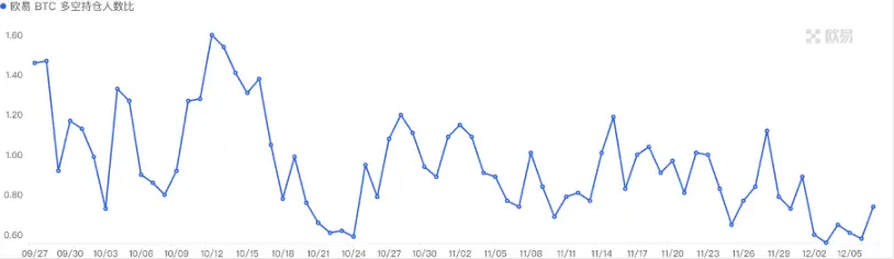 期货多空比:0.8。散户情绪偏空。散户情绪多为反向指标,0.7 以下比较恐慌,2.0 以上比较贪婪。多空比数据波动大,参考意义削弱。