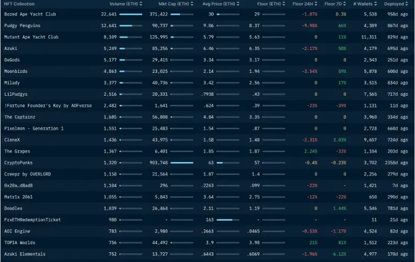本周头部蓝筹项目地板价格基本上都大幅上涨,MAYC 上涨 11%,Pudgy Penguins 暴涨 66%,Azuki 暴涨 50%,Moonbird 暴涨 59%,Milady 上涨 17%。过去一周 NFT 市场交易量继续大幅度上涨,Gas 费用以及用量也进一步增长。随着大盘进一步的上涨,NFT 市场也渐渐走出了低谷。明年牛市来临之前,很有可能会有更多的新颖模式玩法的 NFT 项目展现在我们眼前,让我们期待 NFT 在新的一轮牛市来临之前会有怎样的表现。