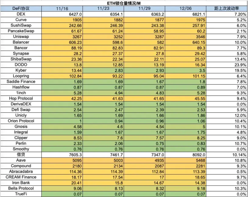 期货资金费率:本周费率为正,市场情绪正常。市场在 BTC 费率在 11 月 12 日创下今年来最高费率后开始调整。费率 0.05-0.1%,多头杠杆较多,是市场短期顶部;费率 -0.1-0%,空头杠杆较多,是市场短期底部。