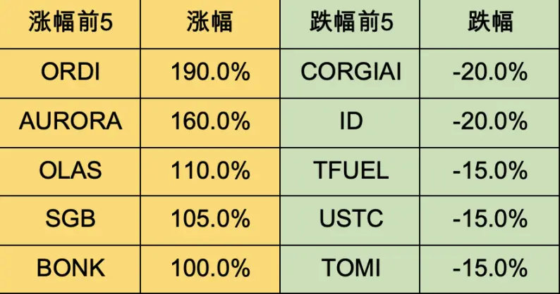 1. ORDI:是 BTC 生态龙头,是 BRC20 协议的第一个铭文。近期由于 BTC 核心开发者的不同观点,筹码出现大幅换手。历史上作为新一类资产的龙头,大概率会进入市值前 30。