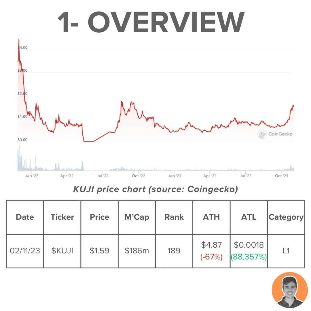 KUJI 于 2021 年 11 月通过代币生成活动(StarTerra 平台)推出。