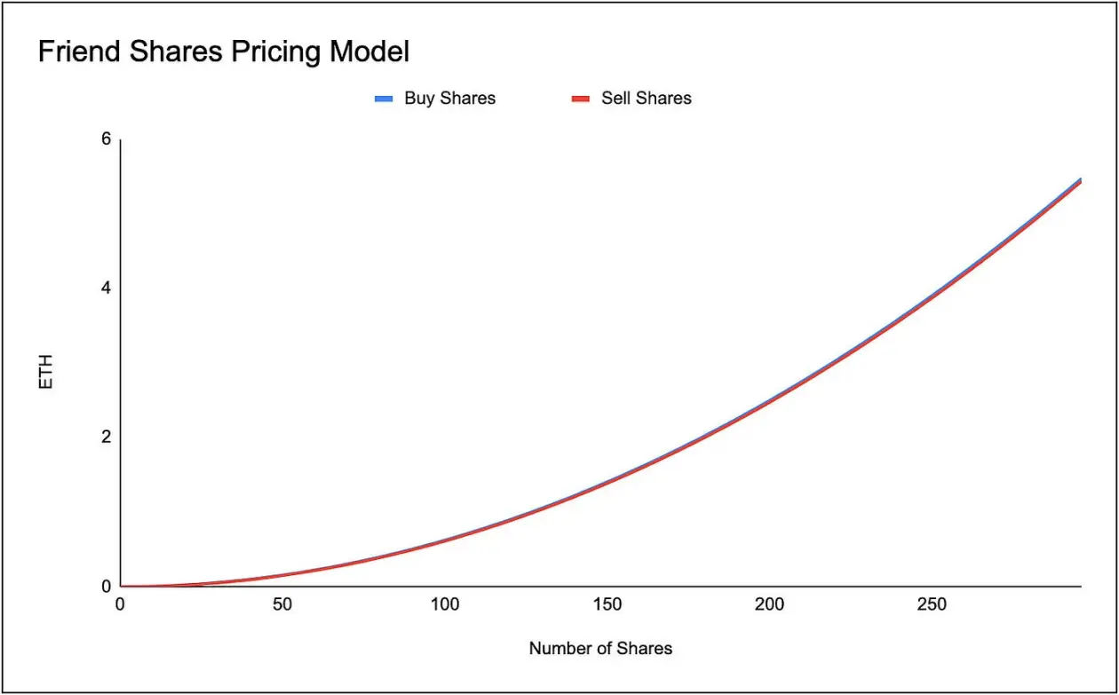 Friend.Tech: 每个账户绑定的 key 根据价格曲线定价(买的人越多价格越高)