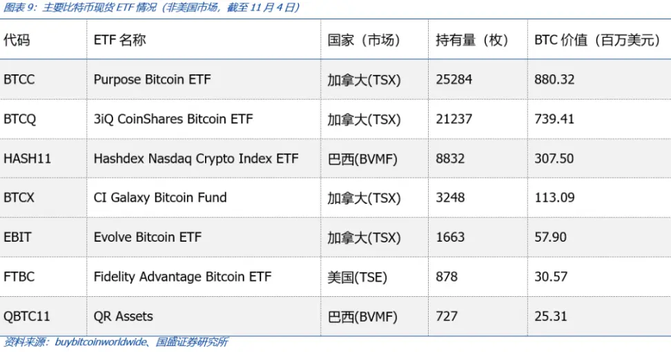 虽然在美国市场比特币现货 ETF 申请并不顺利,但实际上有几个其他国家资本市场已经先于美国批准了比特币现货 ETF,其中排名居前的比特币现货 ETF 包括: