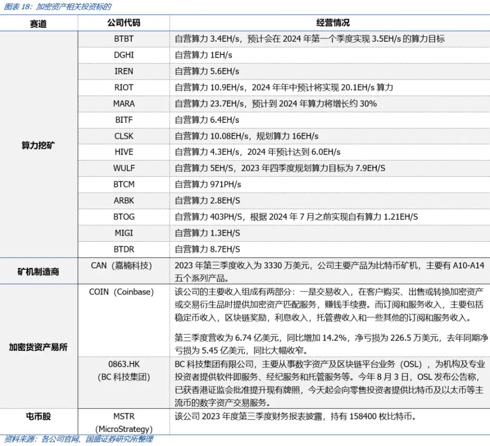 1)算力挖矿股:通过持有 / 托管算力开展比特币挖矿业务;