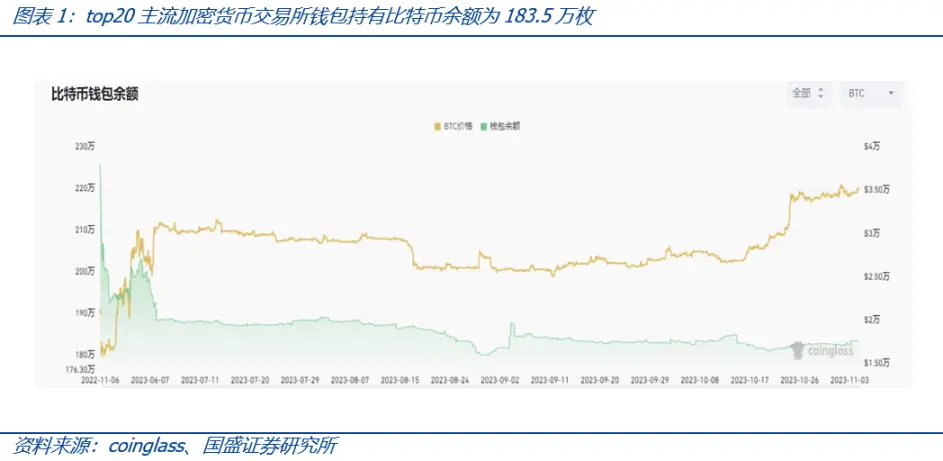 根据 coinglass 数据显示,截至 11 月 5 日,主流的 20 个加密货币交易所钱包比特币余额为 183.5 万枚、40 家上市公司共持有比特币约 20.8 万枚;而根据 Galaxy Digital 的测算,截至 9 月 30 日,比特币投资产品(还包括 ETP 和封闭式基金)持有的比特币总计 84.2 万枚——若按照 11 月 5 日 Coinbase(COIN)交易平台比特币 3.52 万美元价格计算,这些比特币总价值约为 296 亿美元。