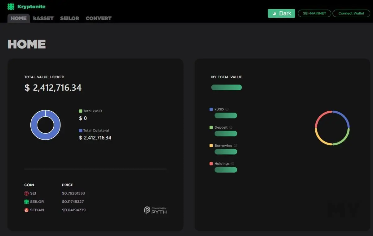 Kryptonite Finance 是流动性质押平台,提供综合货币市场,用户可以在使用杠杆的同时赚取 SEI 复利。Kryptonite 提供两种方式:借贷和质押。用户可以存入稳定币或质押 kAssets 以获得奖励。