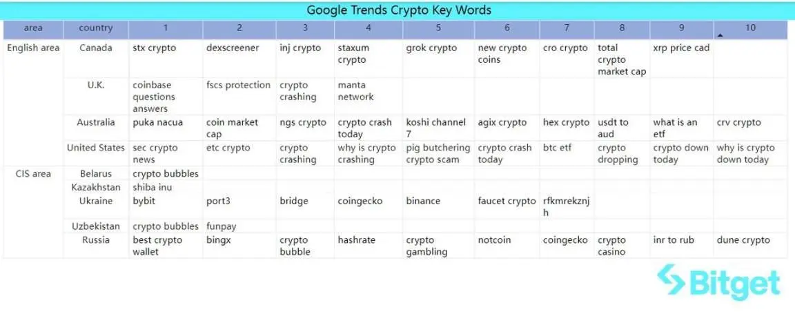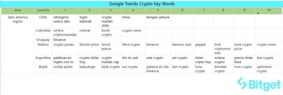 「巴西」 热搜:babydoge、bssb、sol、dot、luna、tron、op;