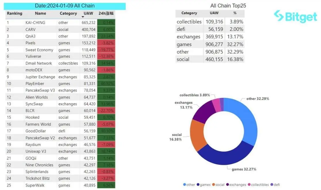 Pixels(Dapp):链游 Pixels 在其社区 AMA 中表示,游戏的 Play to Airdrop 第二季于 1 月 5 日开始,第二季相比于第一季的分配会更少,最终或将包含抽奖系统。此外,游戏主币 PIXEL 的代币发行(TGE)将于一到两周内进行,而 Play to Airdrop 第一季奖励也将于此次 TGE 前进行发放。