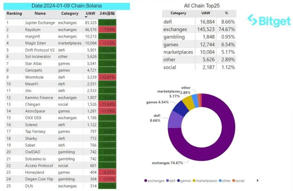 Jupiter(Dapp):Jupiter 联合创始人 Meow 表示,计划在一月底进行 JUP 代币空投,将于团队钱包中提取 10% 用于提供流动性,从社区钱包中提取 15% 用于首次空投以及早期社区活动需求,预计 JUP 创世首日将有 15%-17.5% 的代币进入流通,10%-7.5% 的代币处于热钱包存储状态,75% 的代币处于冷钱包存储状态。