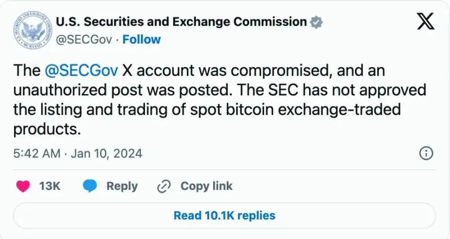 美国 SEC 账号因被盗事件所犯的错误也让其成为社交媒体上的众矢之的。