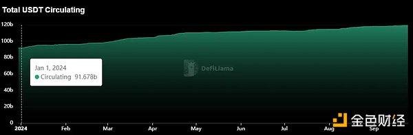 Circle 近三个月的疯狂印钞,增发约 8 亿 USDC,也使得 USDC 的市值在 2024 年呈现缓慢上升趋势,修复矽谷银行所带来的伤痕。