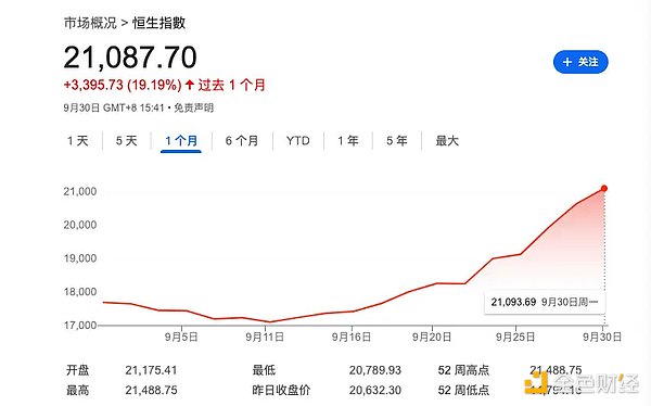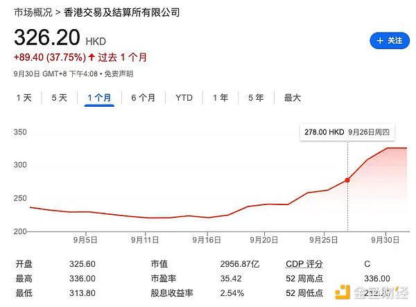 近一个月,恒生指数累计上涨近20%,港交所(00388)累计暴涨超37%。