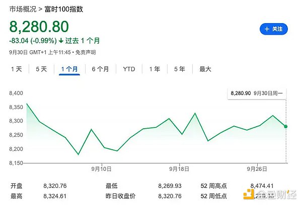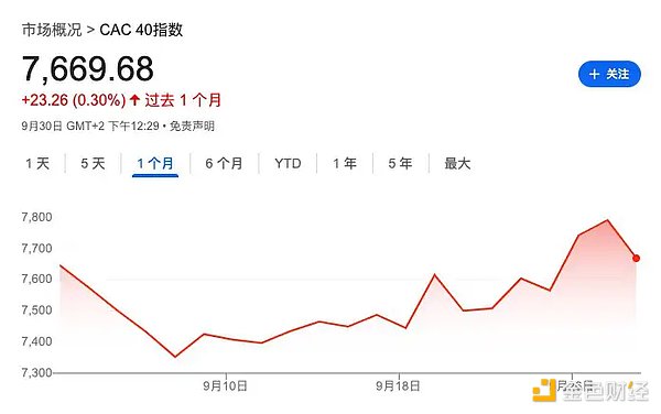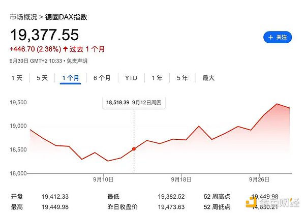 而在美联储降息后,英国央行表示维持利率不变。美联储降息后欧洲股市收高,欧洲科技板块收涨超3.4%领跑,法国CAC40股指收涨2.29%, 德国股市的表现尤为引人瞩目,Dax指数在降息消息公布后大幅高开,推动该指数历史上首次突破19000点大关。英国富时100上涨1.25%以上,荷兰AEX指数收涨1.77%。而截至到9月30日,除富时100 9月19日冲高目前回落一些,其它几支股还都处于上涨行情中。