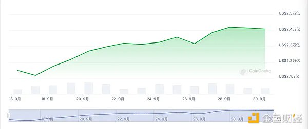 加密总市值也迎来了上涨,目前稳定在2.4万亿美元,而在9月18日,该数值为近2.2万亿美元。