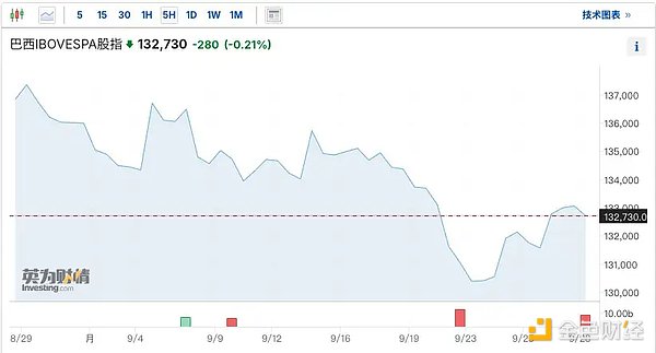 巴西IBOVESPA股指在巴西宣布加息后整体处于下跌趋势,23日至今有一定的反弹。