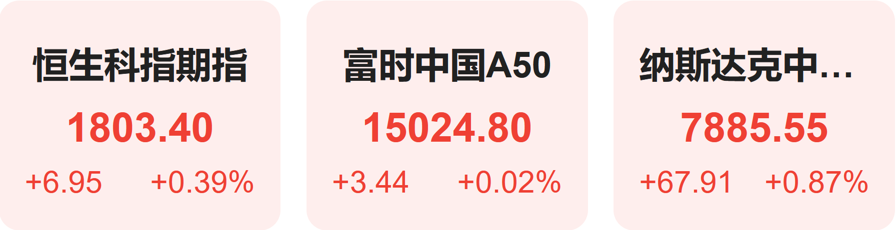 2月10日,隔夜恒生科技指数期货上涨0.39%,纳斯达克中国金龙指数上涨0.87%,富时中国A50指数上涨0.02%。