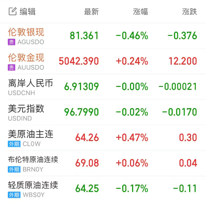 现货黄金止步两连涨,美国零售销售数据公布后一度短线拉升,但随后迅速回吐涨幅,伦敦金最终收跌0.18%,报5039美元/盎司;现货白银盘中下破80美元关口,伦敦银最终收跌0.67%,报81美元/盎司。