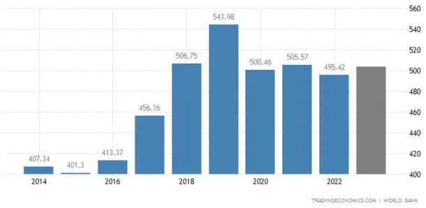 2022 年,泰国人均 GDP 为 6278.35 美元。泰国的人均 GDP 相当于世界平均水平的 50%。从 1960 年到 2022 年,泰国人均 GDP 平均为 2976.71 美元,在 2019 年达到历史最高,为 6453.89 美元。