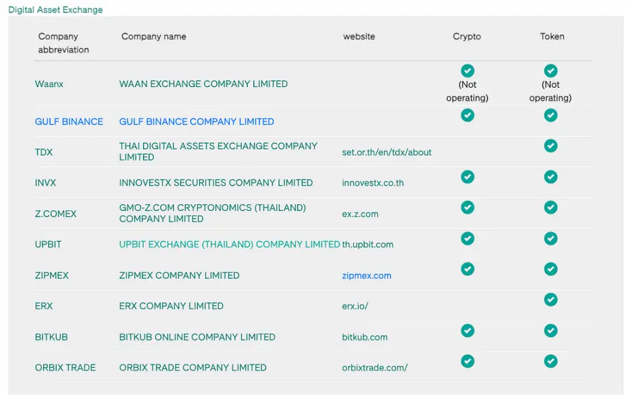 根据泰国证券交易委员会的规定,有一份注册并获得许可的 CEX名单,以下这些交易所被允许在泰国开展业务: